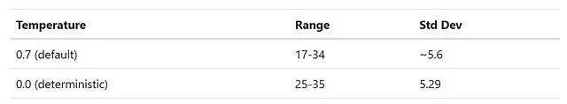 面对方差的第一反应自然是把 LLM temperature 调低,追求确定性行为。测了: