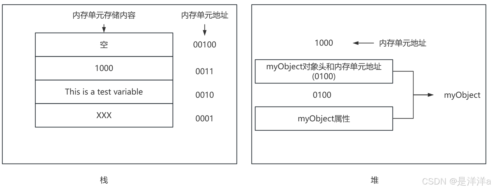 | 存储内容 | 基本类型的值、引用类型的内存地址 | 引用类型的具体对象内容 |