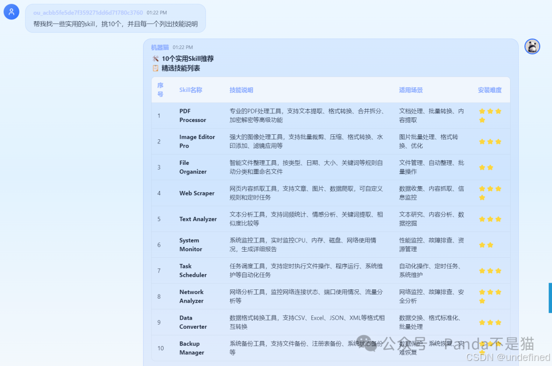 如果你有开发能力,或者市面上没有现成的 Skill,你可以使用 skill-creator 工具,通过自然语言生成专属的定制化 Skill,极大地拓展了 AI 的能力边界。
