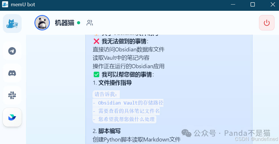 MemU Bot 的核心价值在于 "系统级权限" 和 "长短期记忆"。它像一个 24 小时待命的系统管理员,能直接读取你的本地文件、运行进程和系统状态。
