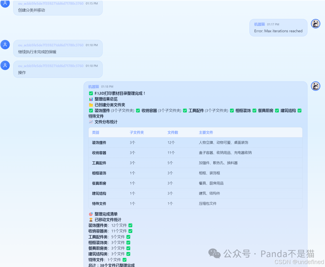 AI 会自动识别、创建文件夹并移动文件。这才是真正的自动化。