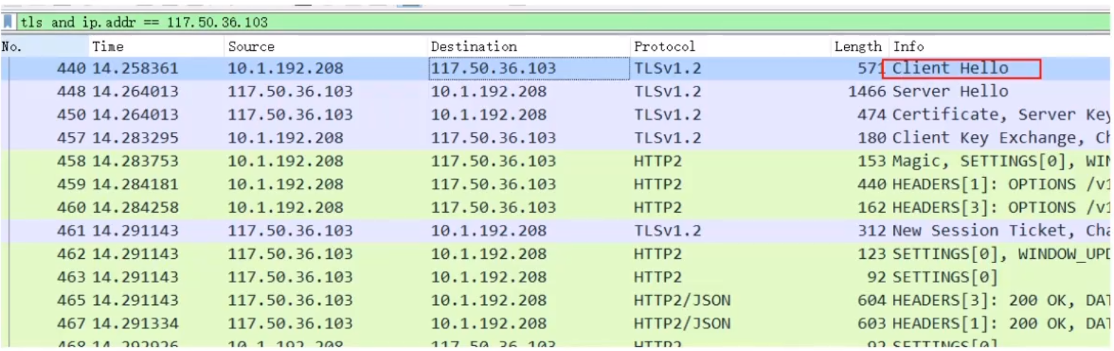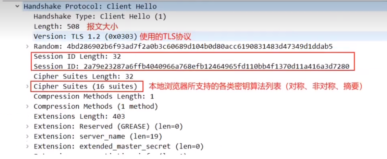 浏览器给出TLS协议版本号、一个客户端生成的随机数 1(Client random),以及客户端支持的加密方法。(明文通信)