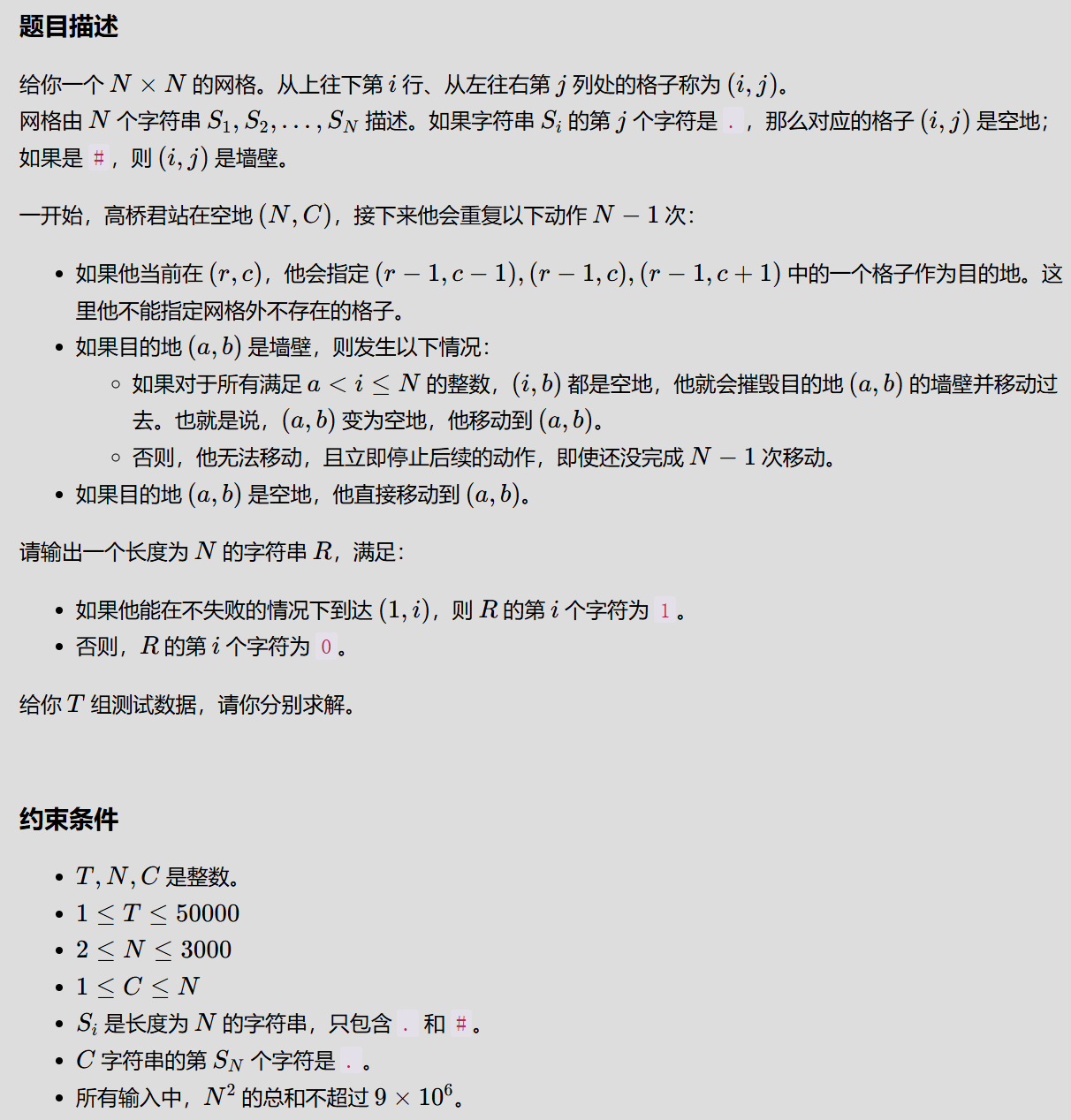 forr(j,1,n)all[j]=(s[n][j]=='.');//初始化"直通状态" 初始位置破不了任何墙 只有空地满足"直通"