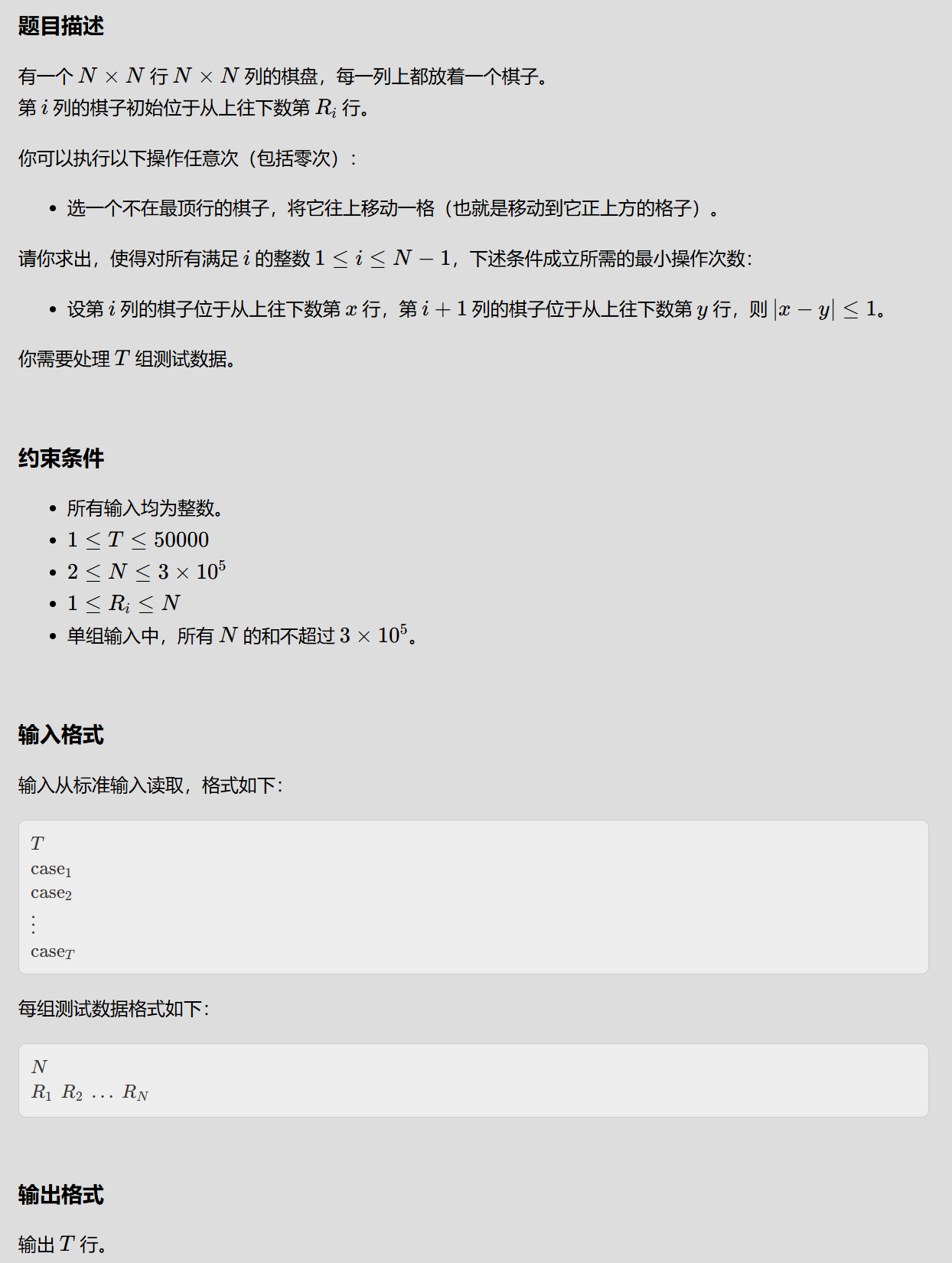 题意:每次操作对数组中数-1,相邻数 ∣ x − y ∣ ≤ 1 |x-y|\leq 1 ∣x−y∣≤1,即 R i ≤ R i + 1 + 1 , R i ≤ R i − 1 + 1 R_i\leq R_{i+1}+1, R_i\leq R_{i-1}+1 Ri≤Ri+1+1,Ri≤Ri−1+1