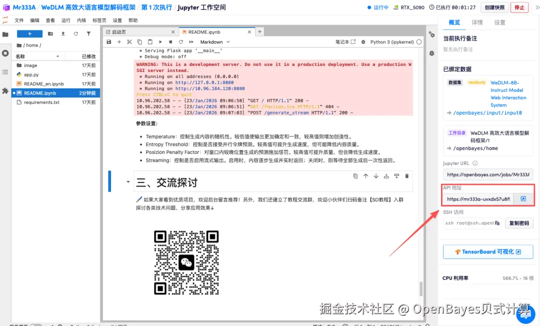 目前,「WeDLM 高效大语言模型解码框架」已上线 OpenBayes 官网的教程版块,点击下方链接即可体验一键部署教程 ⬇️