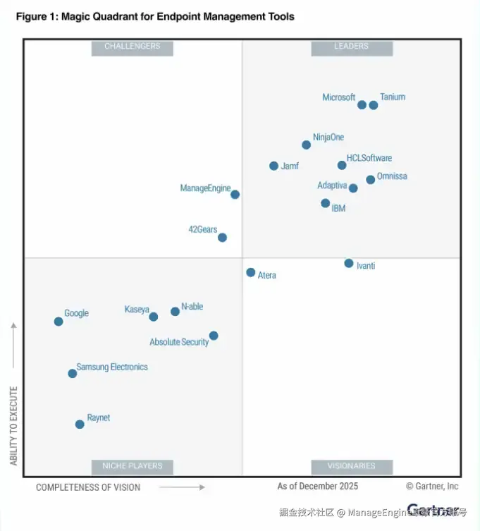 ManageEngine卓豪跻身2026年Gartner终端管理工具魔力象限,并入选Gartner终端管理工具关键能力评估报告!