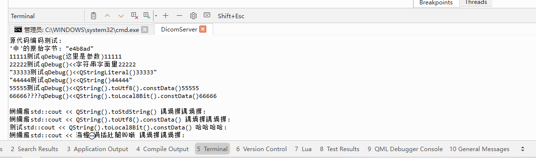 但qDebug()仍然输出GBK(因为它检测到Windows系统,默认转本地编码)