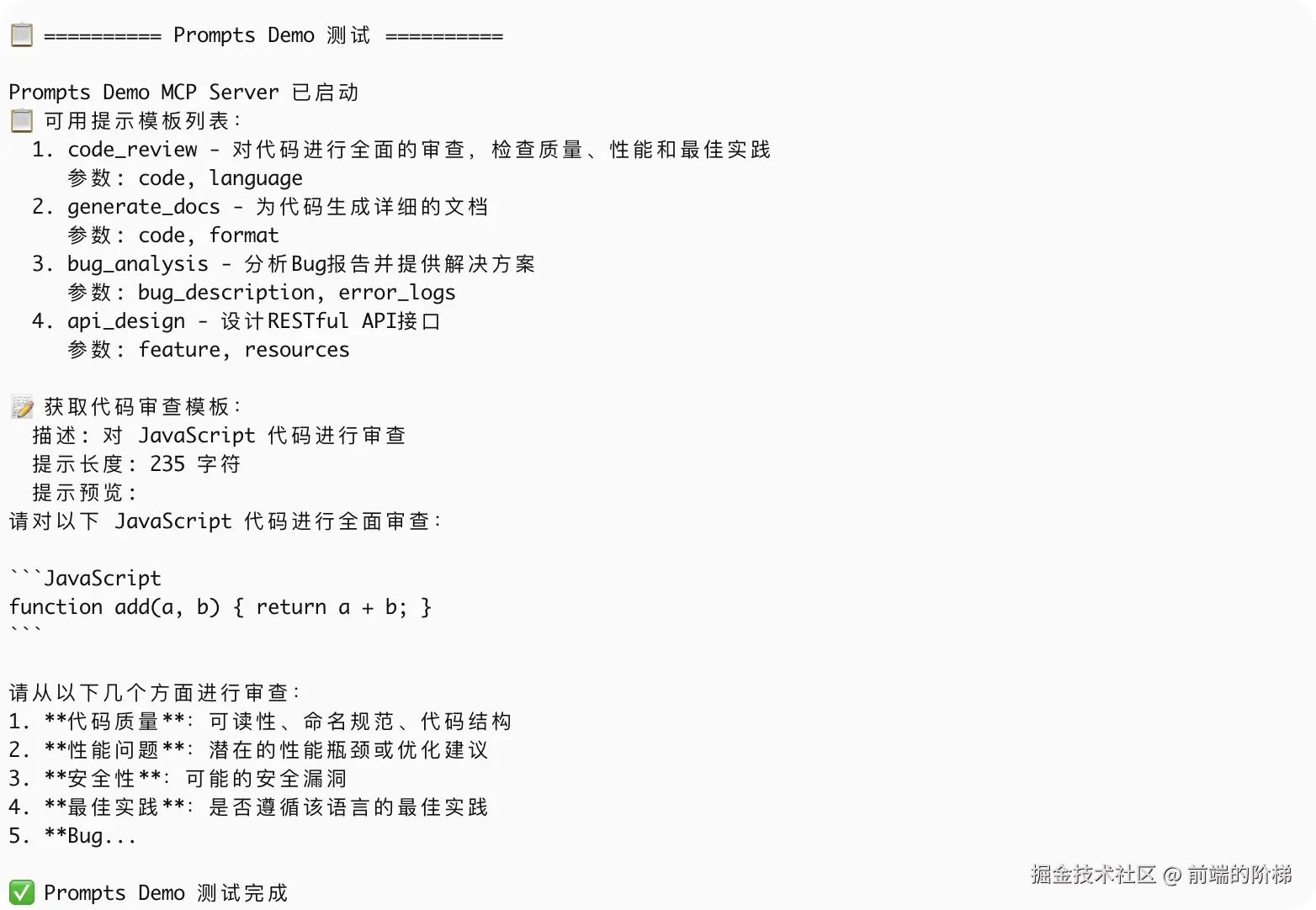 统一发现:通过 prompts/list、prompts/get 统一管理