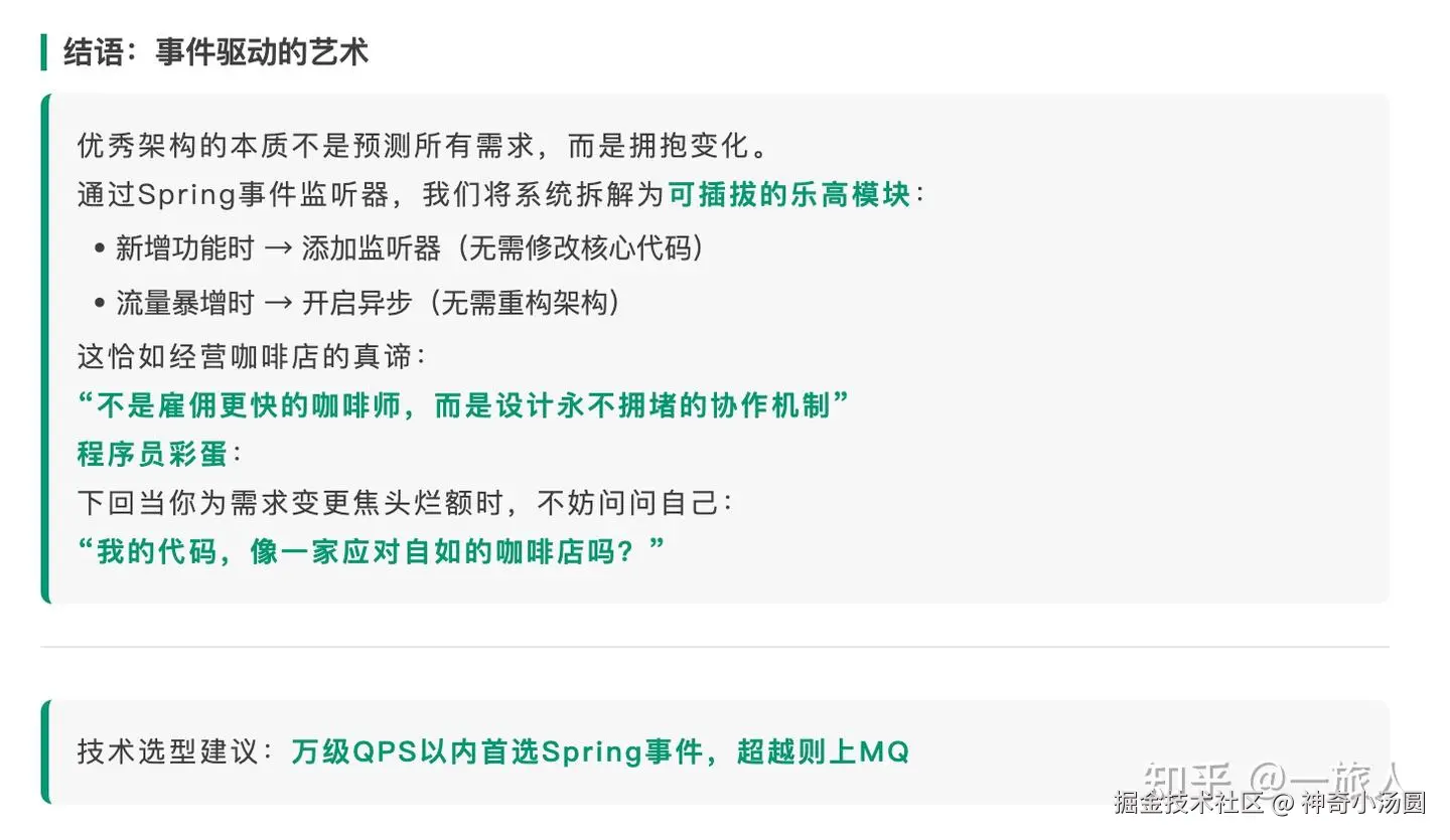 就像Spring事件驱动,用**发布-订阅模式**让系统像顶级咖啡团队般优雅应对洪峰流量"
