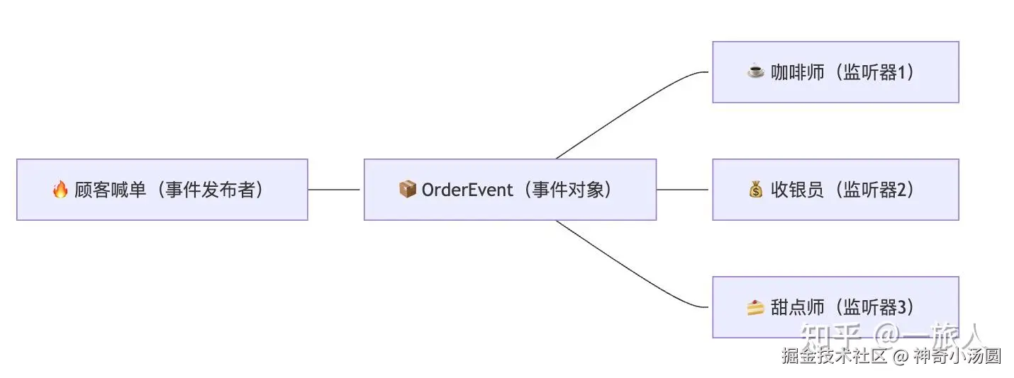 eventPublisher.publishEvent(new OrderEvent(this, order.getId())); // 📢 广播订单