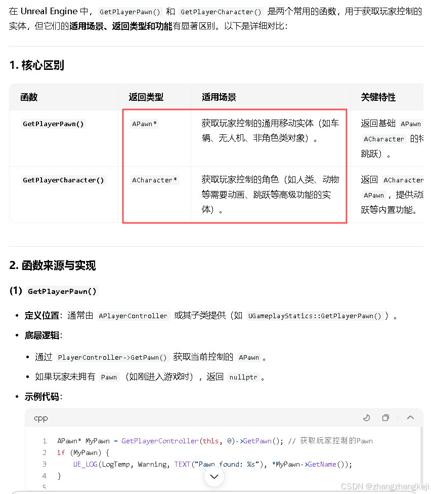 GetPlayerPawn(...) 与 GetPlayerCharacter(...) 这俩函数啥区别