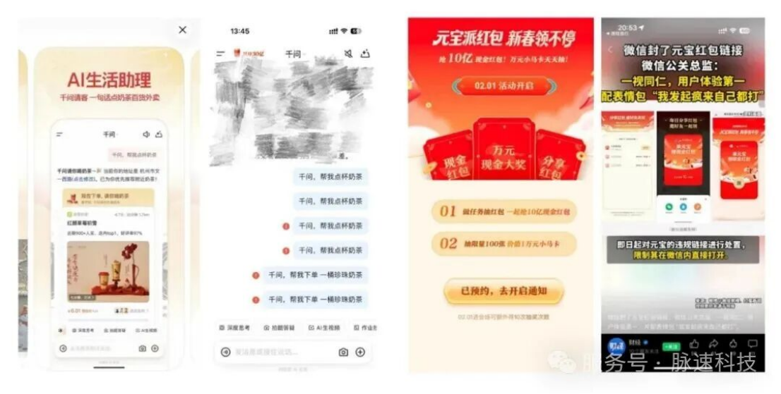 近日,朋友圈被腾讯元宝的"10亿红包发放 "和阿里通义千问的"30亿请客计划 "密集刷屏。从微信封杀分享链接,到千问点奶茶引发的服务器宕机,大厂之间的火药味愈发浓烈。这场商战的本质,并非简单的用户补贴,而是对下一代信息分发入口的绝对主权争夺。