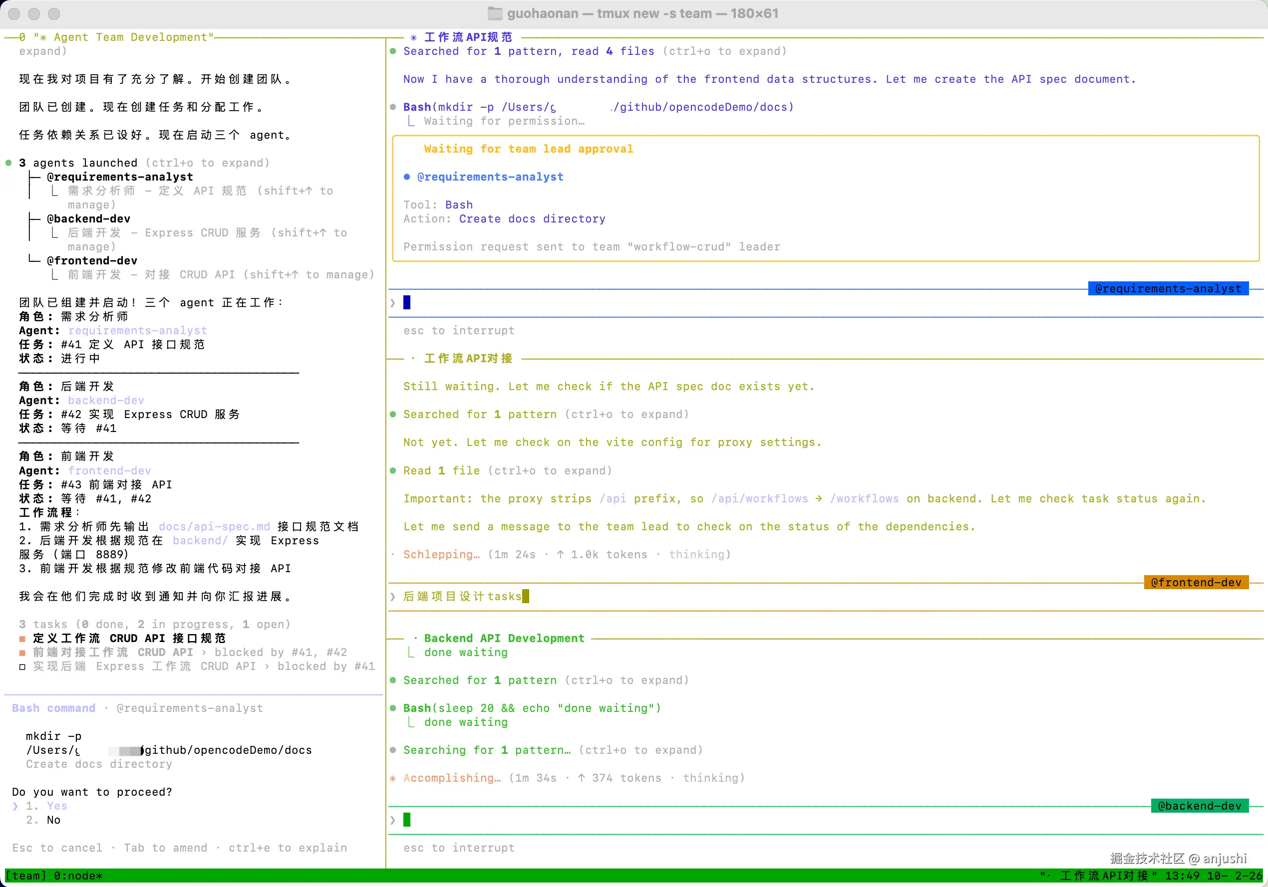 需要注意的是,分屏是claudecode自行创建的,不需要手动创建