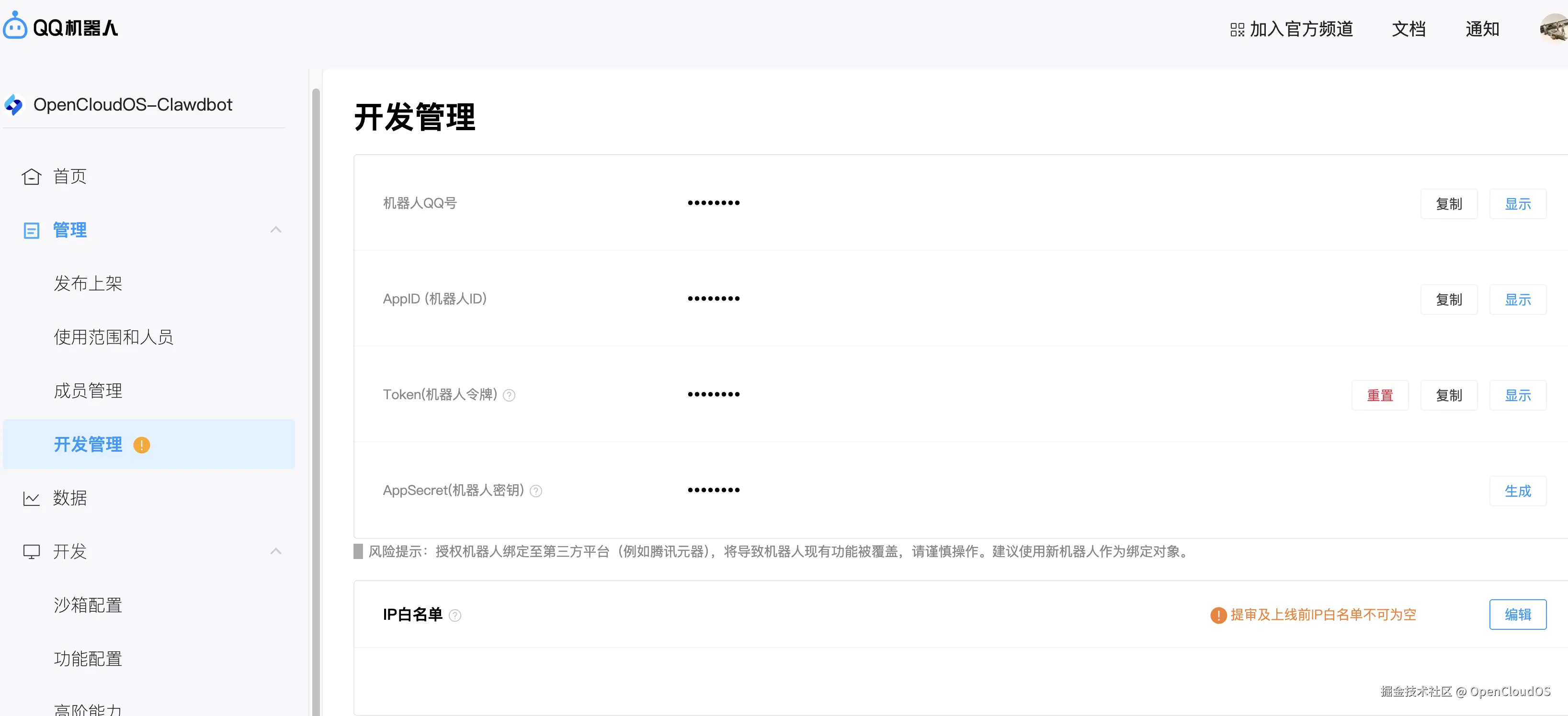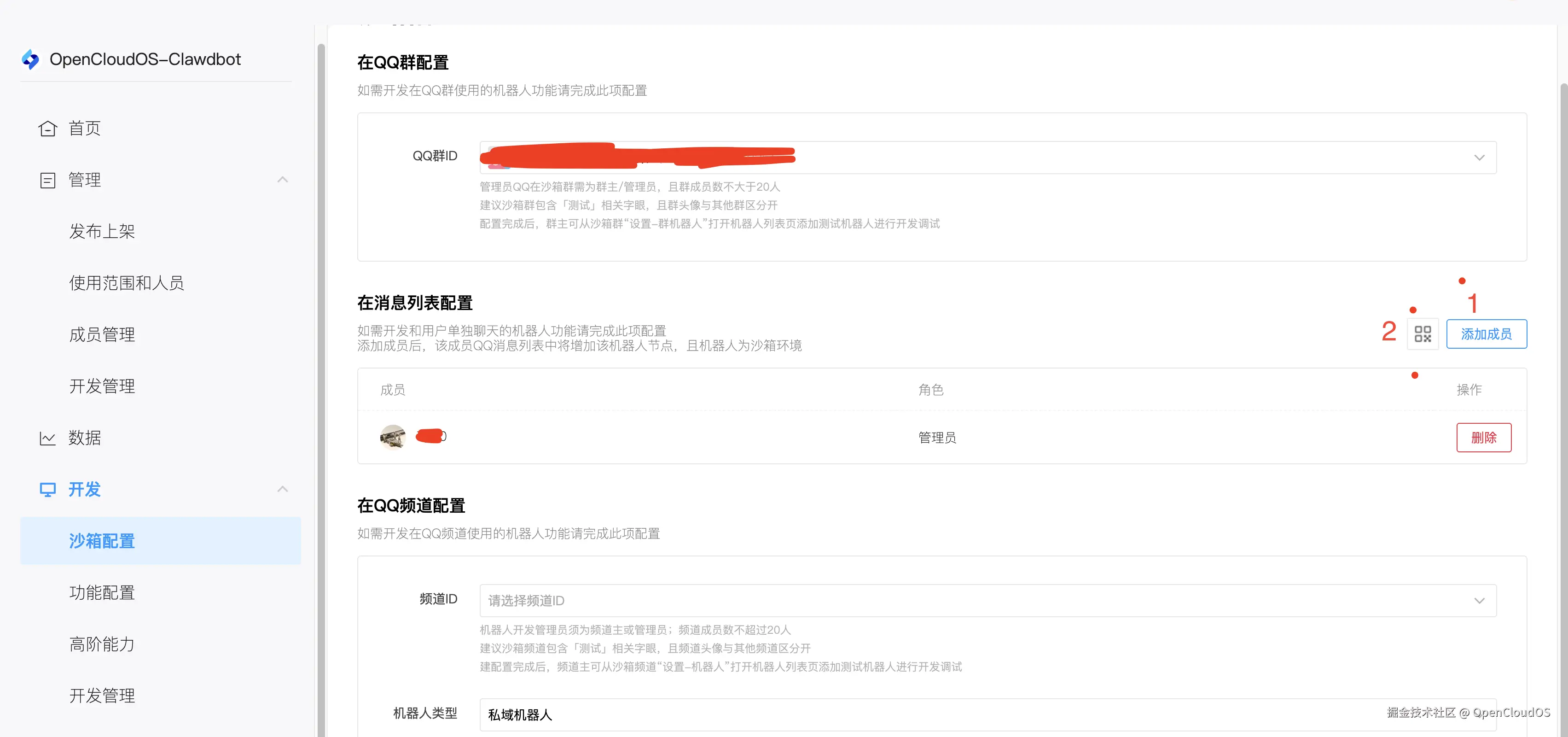 配置好后在qq开发平台里的,沙箱配置里先点击添加成员再扫描二维码就能和ClawdBot沟通,并安排他工作了