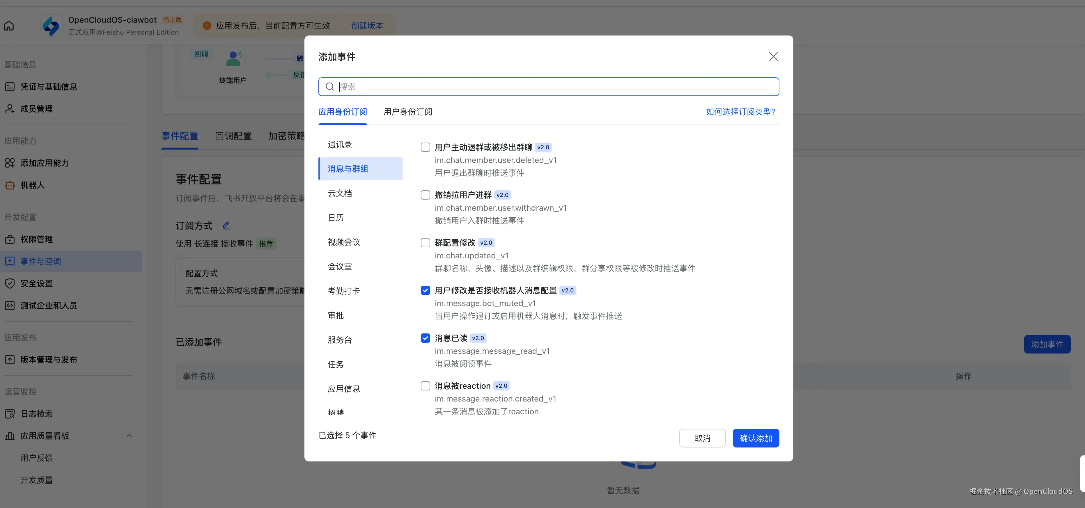 | im.message.message_read_v1 | 消息已读回执 | 读取发给机器人的私聊消息 |