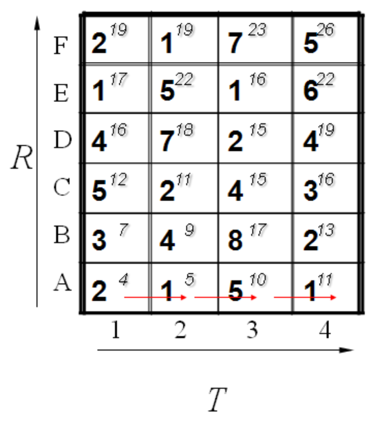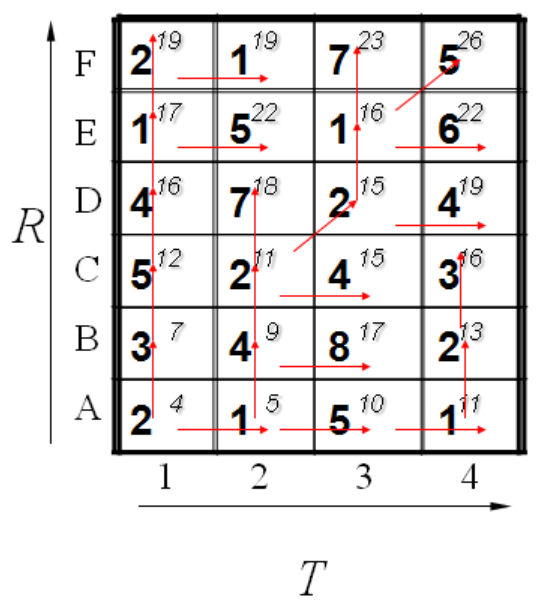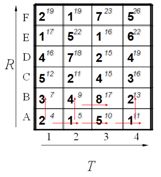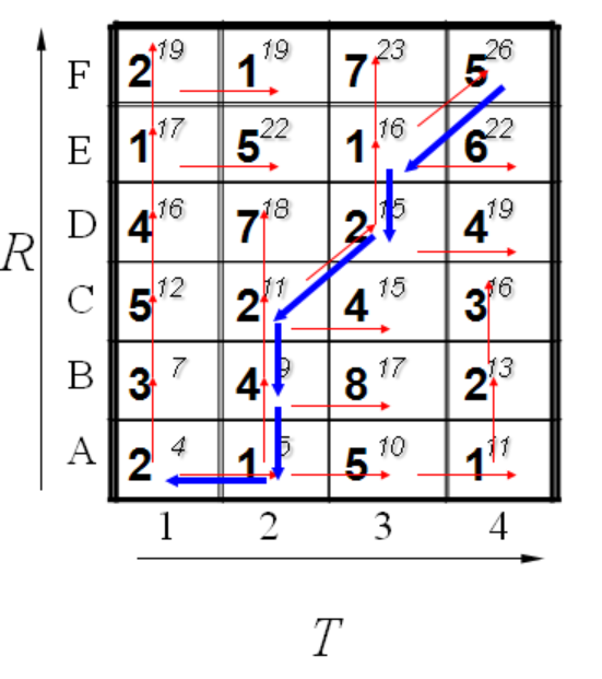 ,使得扭曲后两条轨迹具有最小化累积对齐误差"转换成了下面的问题:"寻找一条从左下角到右上角的最短路径"