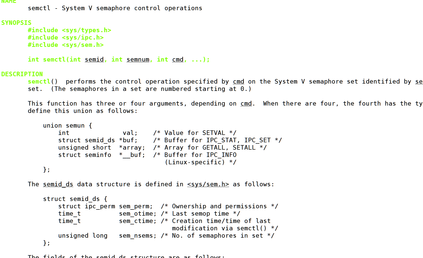 •semid: 是该信号量的标识码,也就是semget 函数的返回值