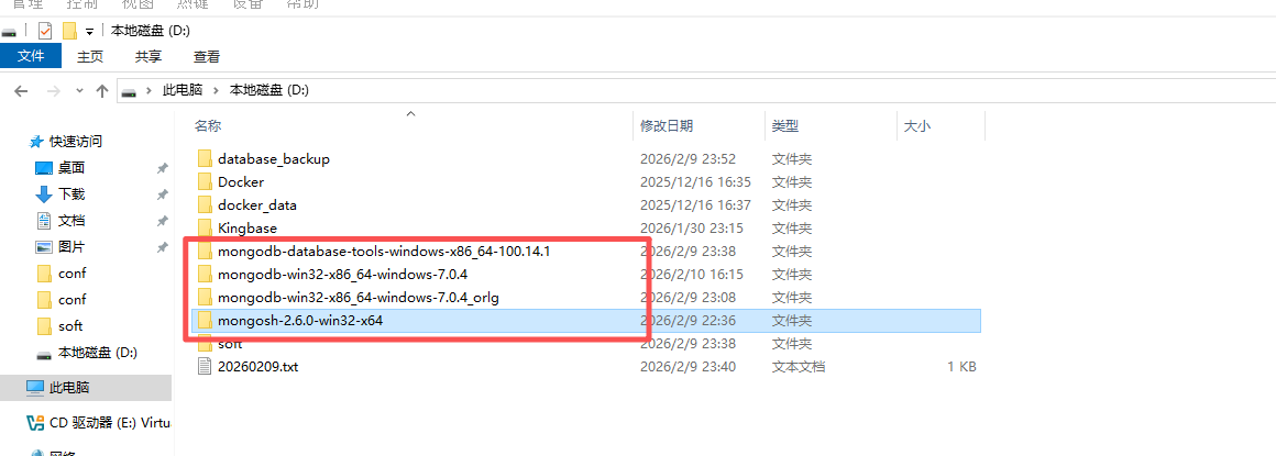 D:\mongosh-2.6.0-win32-x64\bin>mongosh "mongodb://192.168.56.107:27017"