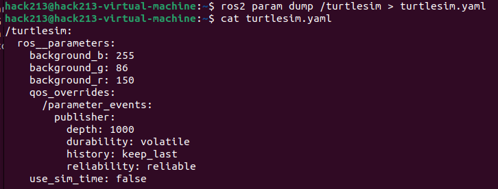 ros2 param dump /turtlesim > turtlesim.yaml