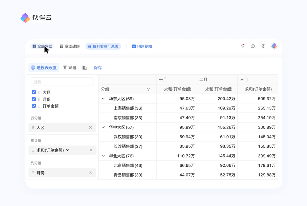 伙伴云如果你平时经常用 Excel 管数据,那会很容易喜欢上它。它在数据管理和多人协作方面体验很好,做客户表、项目表、任务表、库存表都很直观,还能快速做成可视化的管理页面。轻量但实用,对运营、行政、销售团队都很友好。