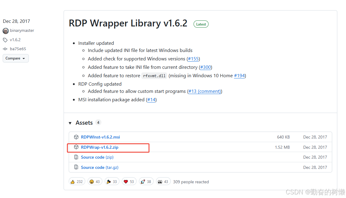 下载地址:https://github.com/stascorp/rdpwrap/releases