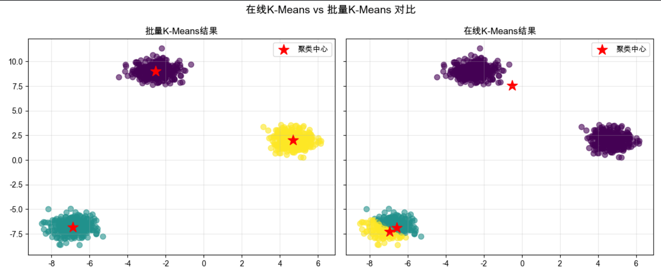 print("\n在线K-Means聚类中心:\n", online_centers)