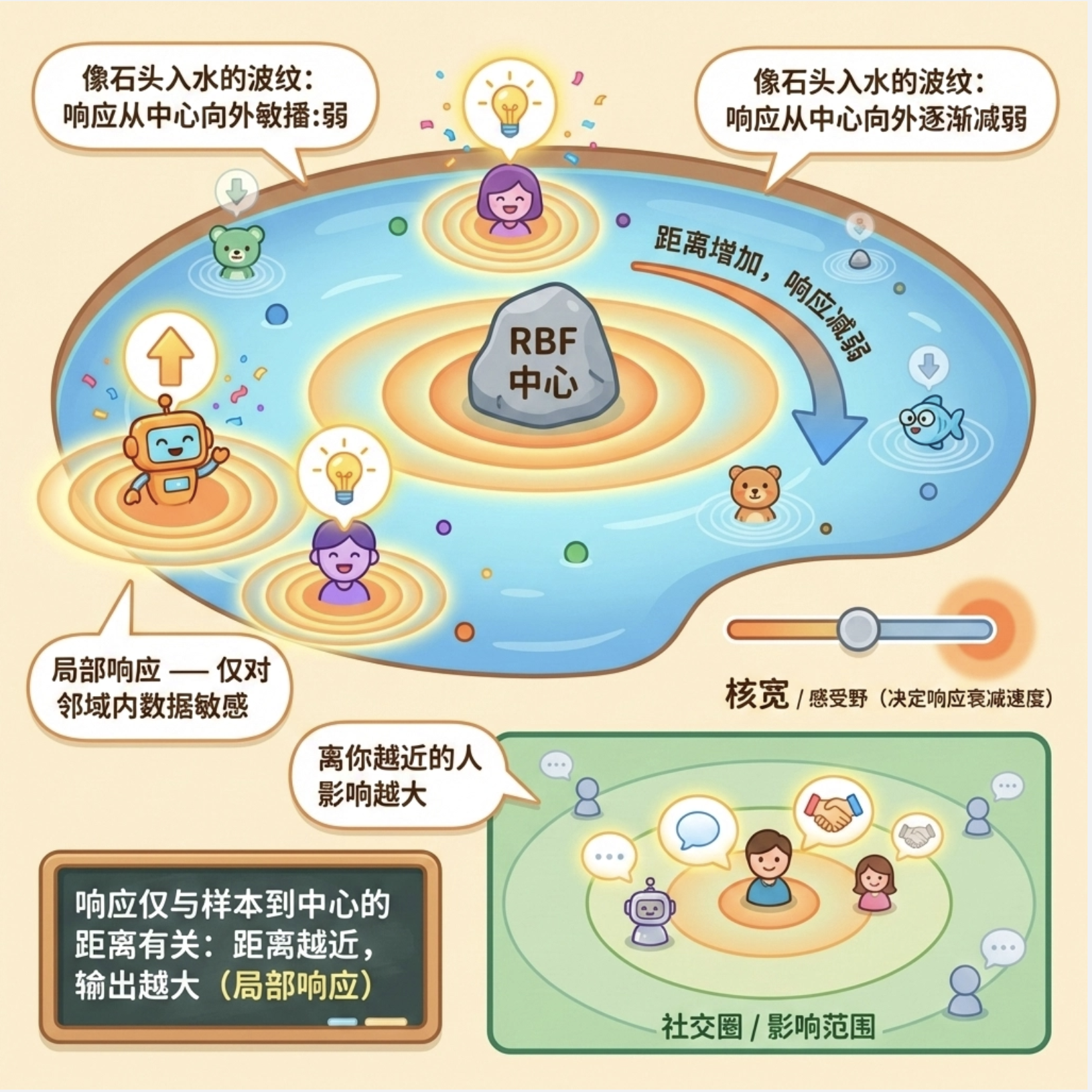 - 径向基函数 是最常用的局部基函数,具备局部响应特性;
