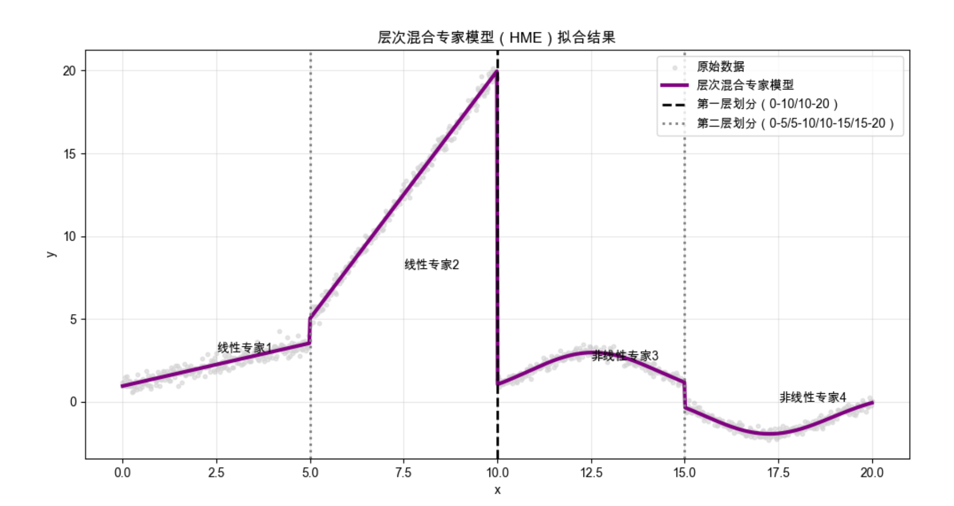 - 实现一个 3 层的层次混合专家模型,处理更复杂的分段数据。