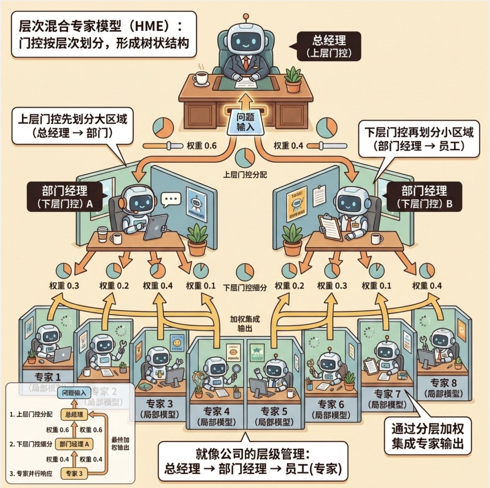 - 层次混合专家模型进一步提升了模型的层次化和可扩展性。