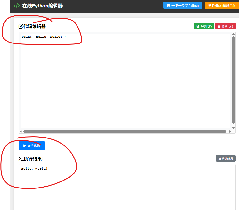 在线 Python 代码编辑器(支持代码执行和结果展示)