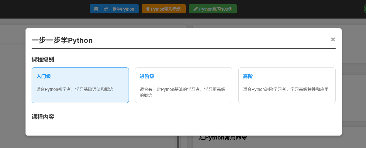 顶端放了一些主要的学习的功能,一步一步学Python,从基础开始。