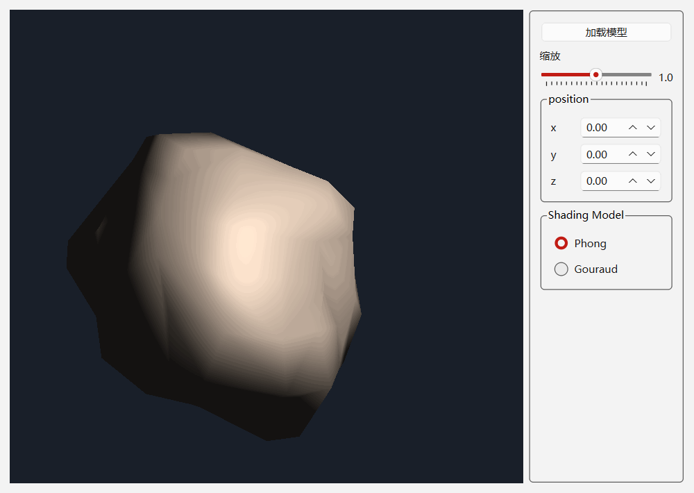 ambient + diffuse + specular,细节最丰富。 - Gouraud:在顶点着色器只对网格的每个顶点算一次光照,得到每个顶点的颜色