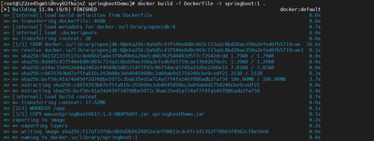 docker build -f Dockerfile -t springboot:1 .