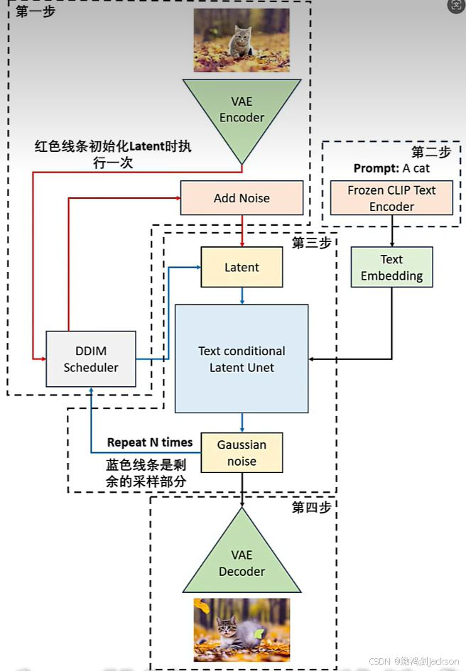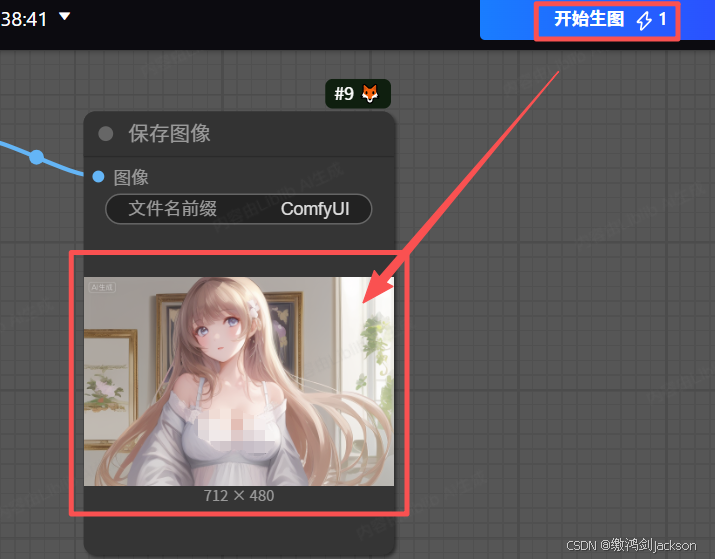 ③上述的①(图片输入)和②(文本输入),在Unet模型中,共同作用,最终生成一张浅空间图像,然后被VAE解码节点,转换成像素空间图像,也就是我们最终肉眼可见的图像。