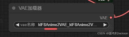 ④给VAE加载器选择一个大模型(此时选择下图的带anime的大模型,表示动漫风格,这个色彩比较鲜艳)