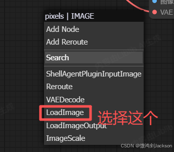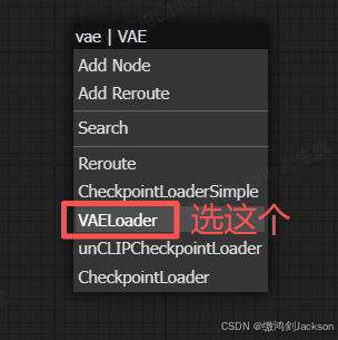 ②从VAE编码(或者VAE解码)的VAE接线头,拉出一个VAE加载器