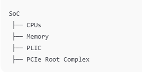 - 创建 CPU/HART 与中断控制器:遍历 socket,创建 TYPE_RISCV_HART_ARRAY,根据 aia/aclint/tcg 选择 PLIC/ACLINT/CLINT 等中断相关设备。