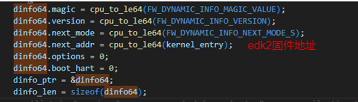 mret 前把这两个值绑定到 a0/a1 传给下一阶段edk2。