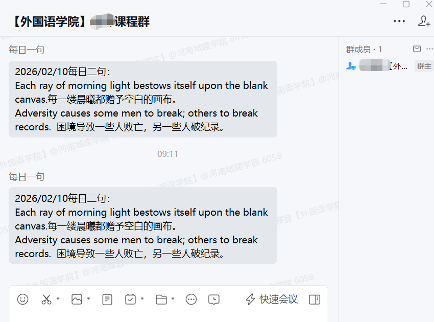平时英语教学过程中,经常通过公众号给学生发送英语每日一句,让学生每天都可以学习地道的英汉双语句子,帮助学生巩固英语语法,提升词汇量,从而为四六级考试打好基础。
