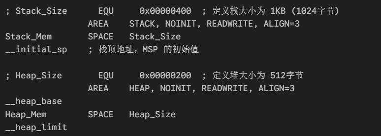 **注:**栈要给够 :如果你要在局部变量里定义大数组(如 char buffer[512]),一定要去启动文件里把 Stack_Size 改大,否则程序会莫名其妙进入 HardFault 死机。
