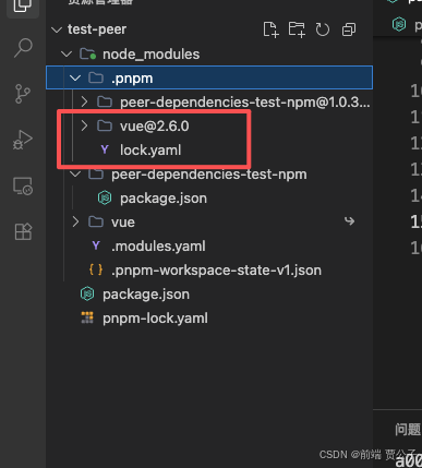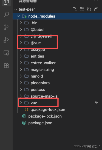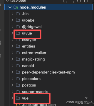 此时我们发现peer-dependencies-test-npm目录下也没有 Vue 相关的依赖了。