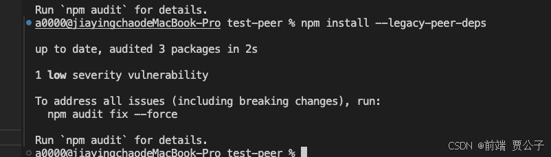 在错误中建议我们使用 --force 或 --legacy-peer-deps 命令进行重新安装。那么我们就先来了解一下这两个命令是什么意思。