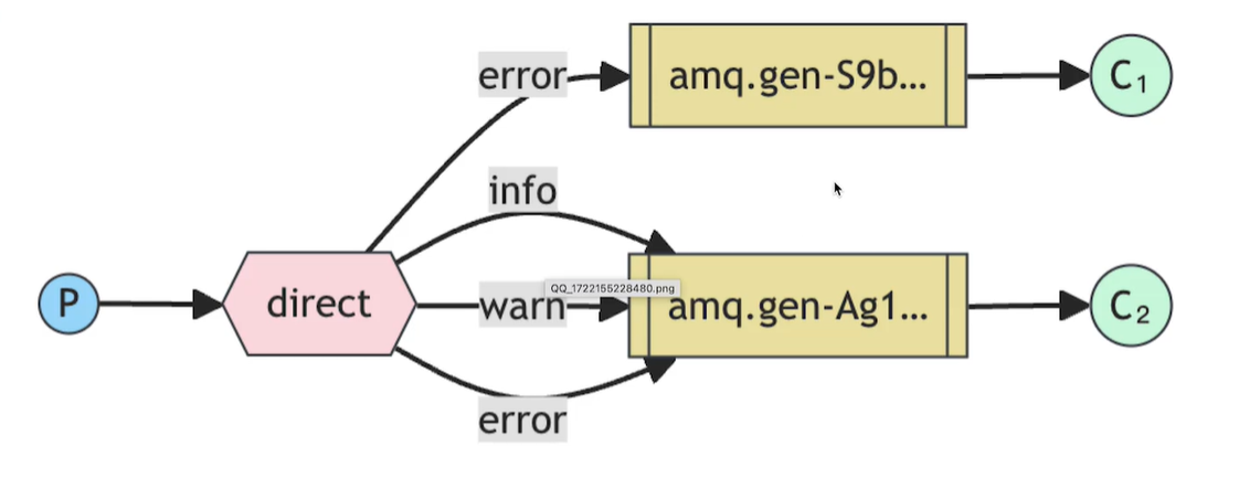 生产者可以通过交换机发送消息,message 到达 broker 的第一站,根据分发规则,匹配査询表中的 routing key,分发 消息到 queue 中去,也可以直接发送到队列当中。