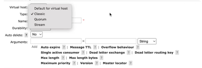 - 使用:在queueDeclare的时候,往params里面,设定x-queue-type为quorum