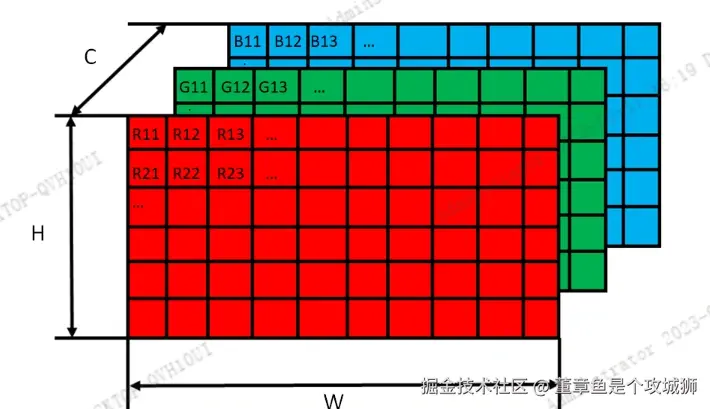 (一张彩色RGB图片按照通道维度(C)堆叠)