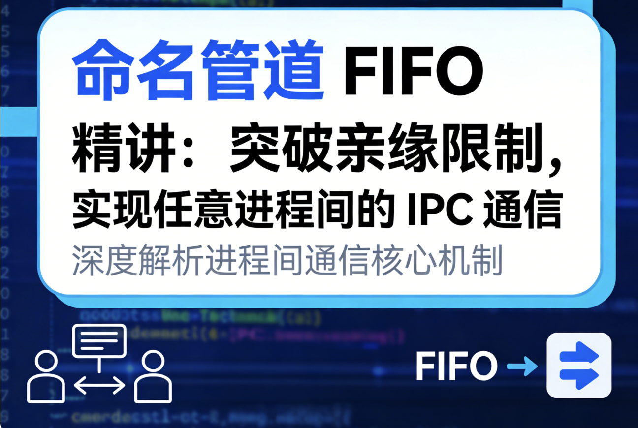 命名管道也叫FIFO(First In First Out),是一种特殊的管道文件,它拥有磁盘级的文件名,通过文件系统实现进程间的关联,操作接口与匿名管道完全兼容,却能覆盖更广泛的通信场景。本文将从命名管道的核心概念出发,一步步拆解其原理、创建方式、打开规则、实战应用,结合硬核代码和通俗讲解,让你彻底吃透命名管道,掌握跨进程通信的关键技能。下面就让我们正式开始吧!
