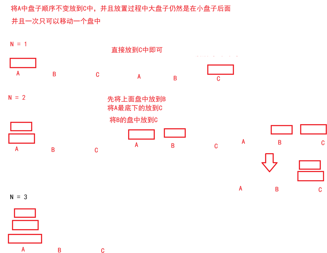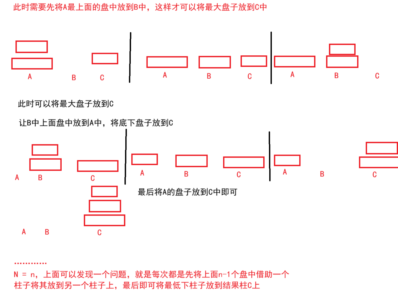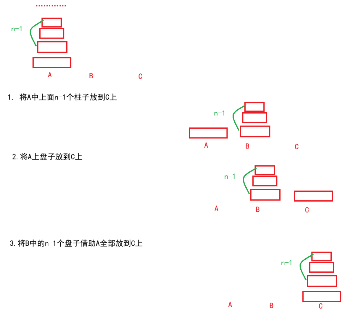 题目解析:就是将A柱子中盘子放到C柱子上