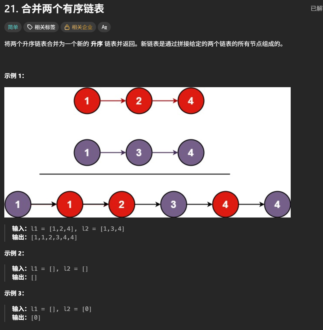 题目解析 :就是就是将两个链表进行合并,并且合并结果中的节点都是这两个链表中的