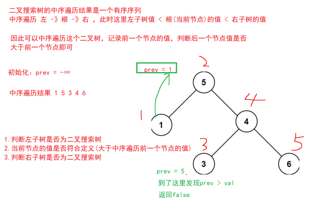 由于中序遍历也是这样的,因此可以转化为二叉树中序遍历是否有序