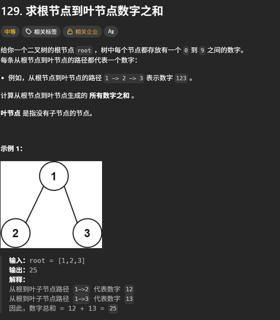 求根节点到叶子节点数字之和